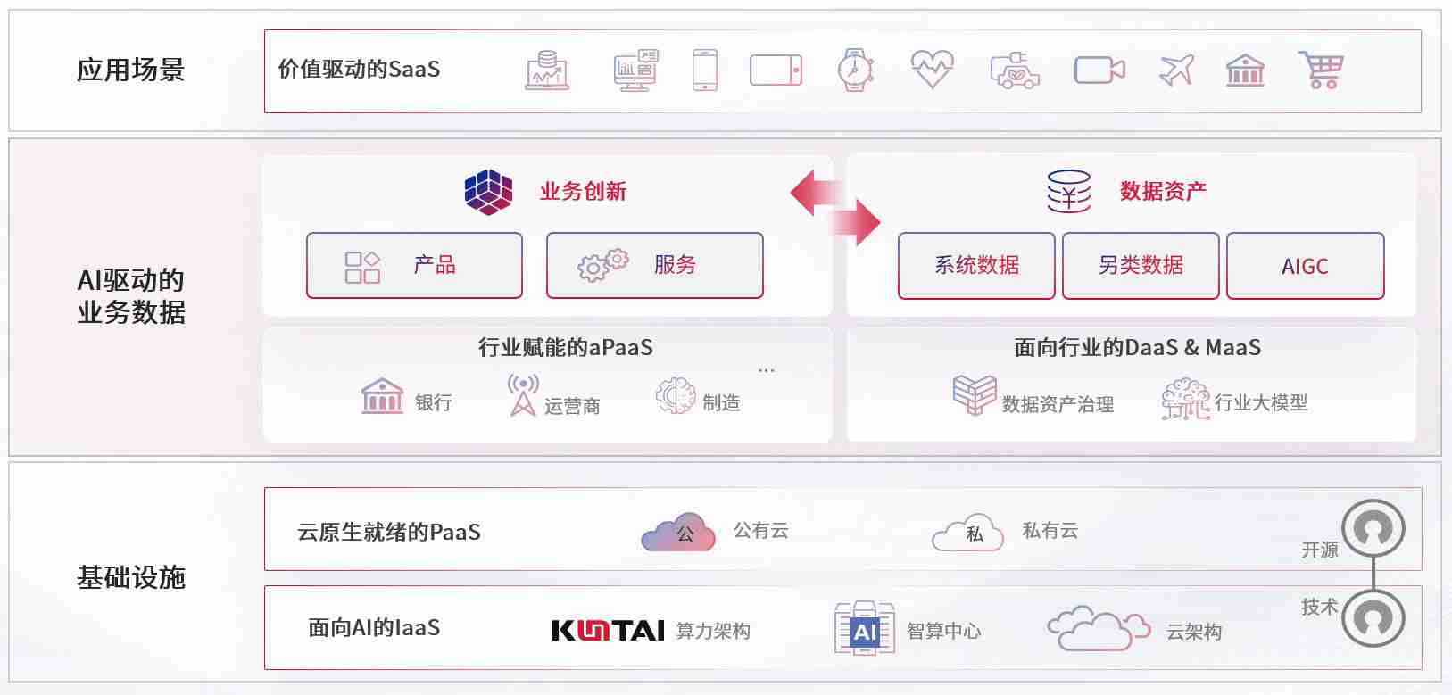 数字时代,,,围绕企业数字化转型的关键要素,,亚米游戏数码开创性的提出数云融合战略和技术体系框架,,,,着力在云原生、、、、数字原生、、、、AI原生和信创产业上架构产品和服务能力,,,为处在不同数字化转型阶段的快消零售、、、汽车、、、、金融、、医疗、、、政企、、、、教育、、运营商等行业客户提供泛在的敏捷IT能力和融合的数据驱动能力,,构建跨界融合创新的数字业务场景和新业务模式,,,助力企业级客户建立面向未来的核心能力和竞争优势,,全面推动社会的数字化、、、、智能化转型升级。。